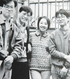 施明德妻子陳嘉君(右二)有雙水汪汪的大眼睛,20年前兩人初次邂逅,施認為兩人年紀差太多,不敢有非分之想,但最后陳嘉君仍擄獲了這位“好色男人”的心。圖為陳嘉君在臺灣東吳大學時期的照片。 來源:臺灣《聯合報》