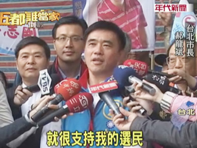 臺灣“五都”選舉將在本周六27號上演,郝龍斌吁民眾幫助拉票。 圖片來源:臺灣年代新聞