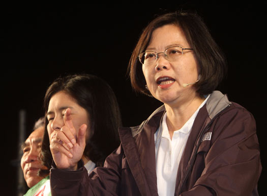 民進黨新北市長候選人蔡英文(右)24日晚間出席臺北縣永和造勢晚會,向選民發表個人政見,爭取支持。圖片來源:“中央社”