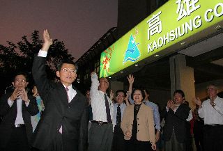 高雄縣政府將走入歷史,高雄縣長楊秋興在縣府員工列隊歡送下,揮別執政9年的縣府。員工們獻上鮮花、擁抱,為楊秋興加油打氣,讓他感動落淚。“臺灣基督長老教會”鳳山教會教友下午到高雄縣政府報佳音,贈給縣府員工糕點糖果,并在牧師的帶領下,為將卸任的楊秋興祈禱。高雄縣政府員工則在縣府前留影紀念。(中國臺灣網 馮存健)