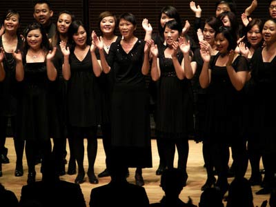 臺北愛樂室內(nèi)合唱團今天上半場的曲目包括多個名曲,包括臺灣創(chuàng)作的《蟑螂》、菲律賓作曲家的《Gloria》,及蒙古作曲家的《八駿贊》。