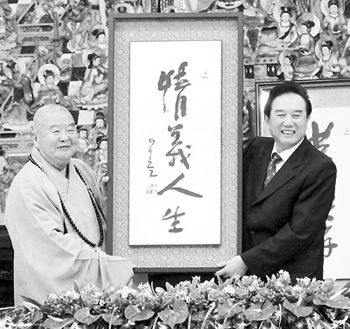 資料圖:星云向陳云林贈(zèng)送書法作品