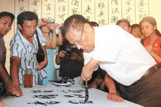 姚琢奇說,鄭階平曾自制出版“漢字繁簡兩體對照表”,希望在大陸推廣繁體字。這本對照表、“中華久遠”字畫,以及及鄭階平用毛筆書寫的信,姚琢奇已于上周透過國民黨中央,轉給馬英九。(中國臺灣網 孫金誠)