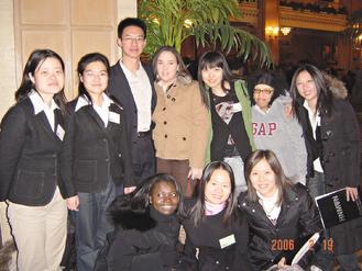 楊喬(前排中)來大陸求學時,申請到獎學金,赴外參與青年會議。圖/楊喬提供 圖片來源:臺灣《聯合報》