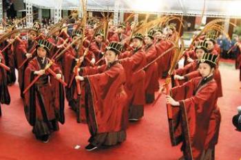 臺北市長郝龍斌擔任主祭官,他表示,由女生擔任禮生是跨時代的創(chuàng)舉,也象征著男女平等的觀念已深入人心。(中國臺灣網(wǎng) 李迪)