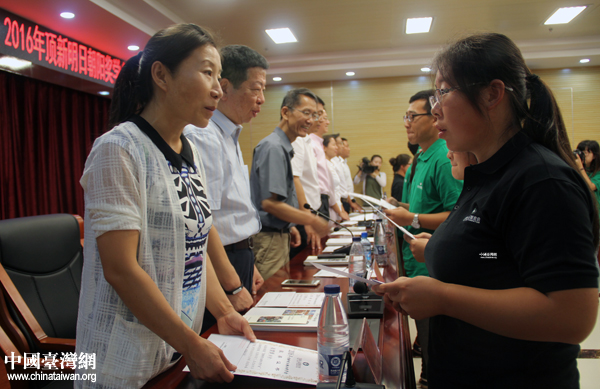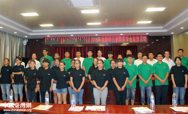 克旗及基金會領(lǐng)導(dǎo)向獲得獎學(xué)金同學(xué)頒發(fā)證書和獎學(xué)金。(中國臺灣網(wǎng) 王思羽 攝)