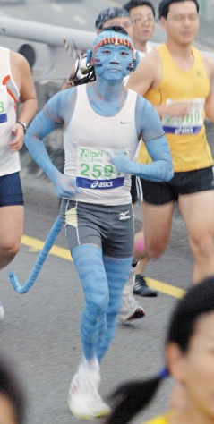一位參賽者模仿成電影《阿凡達》中納美人的模樣參加比賽,格外吸引眼球。圖片來源:臺灣《聯合晚報》
