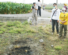 屏東縣高樹鄉焦尸案死者被棄置在一處偏僻芋頭田,連地上都被燒得焦黑。 來源:臺灣《聯合晚報》