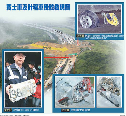 今天凌晨,再挖出一片銀色車殼,但還無法確定是屬于出租車或另一部銀色奔馳車。