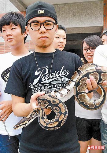臺灣“蛇癡”大學生校園遛蛇(組圖)