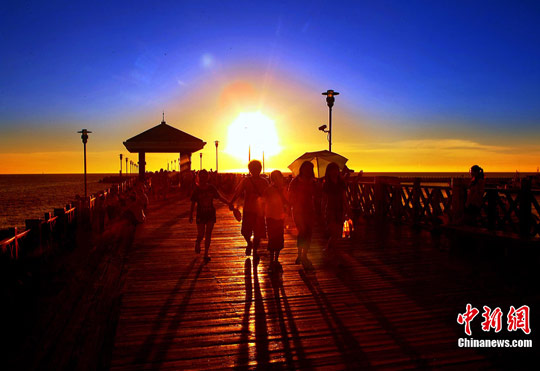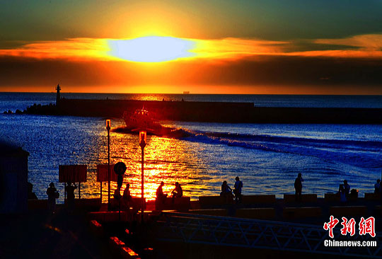 進入7月中下旬的臺灣淡水漁人碼頭,游人如織,黃昏時下,晚霞照碼頭,漁船燈火明,景色迷人。據悉,淡水漁人碼頭,之前為淡水第二漁港,情人橋完工后,完善成為觀光休閑碼頭。中新社記者 宋吉河 攝