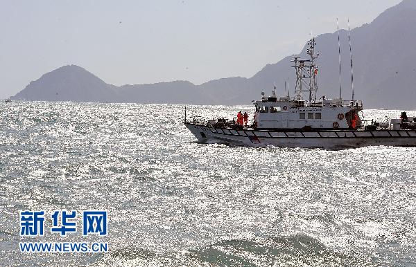 10月31日,臺灣海巡署搜救船在搜尋中。當日傍晚傳來消息:在蘇花公路114.5附近坍塌點,搜救人員用金屬探測儀探測到一件5米左右長的金屬物,懷疑為失蹤創意旅行社的游覽車。11月1日將重點在這一區域搜尋。目前,19名大陸游客及臺灣失聯人員仍杳無音信。臺灣搜救人員繼續在蘇花公路112.5公里——114.5公里附近坍塌點搜救。新華社記者 何俊昌 攝
