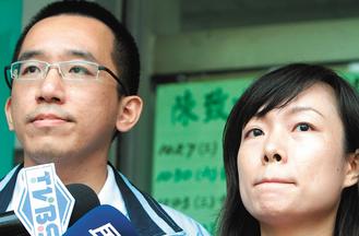 陳致中召妓案16日上午判決,陳致中被認定有召妓,陳致中(左)召開記者會表示會上訴到底,黃睿靚(右)則是眼眶泛紅表達對丈夫支持,也相信他絕對沒有召妓。 圖片來源:臺灣“聯(lián)合新聞網(wǎng)”