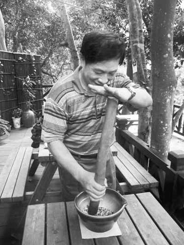 東港的大街小巷處處晾曬著的油魚子,已成為一景。油魚是一種深海魚類,學名“薔薇帶”,和魷魚是兩種不同的魚。和大家熟悉的“烏魚子”不同的是,油魚子只有東港才有。東港人仿照烏魚子的制作方式加工油魚子,魚卵要經過腌制、晾曬、修補、壓實、整形等多道加工程序。油魚子吃法與烏魚子相同,先將成品切成薄片,搭配蒜苗及白蘿卜入口,咸中略帶甘甜,有點黏又不會粘牙,又香又嫩的獨特風味,令饕客唇齒留香,回味無窮。(記者 趙珊 文/圖)