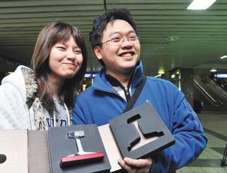 2011年情人節(jié),臺鐵推出500組刻上甜言蜜語的“鐵不出軌”愛情文鎮(zhèn)。圖片來源:臺灣《聯(lián)合報》