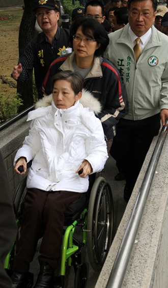 吳淑珍上午到高雄地檢署報(bào)到,準(zhǔn)備轉(zhuǎn)往臺(tái)中培德醫(yī)院評(píng)估是否服刑。圖片來(lái)源:臺(tái)灣《聯(lián)合報(bào)》