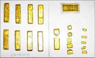 臺警方追繳的被竊黃金。圖片來自網絡
