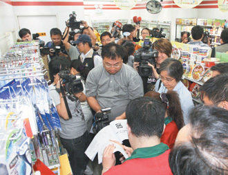 臺灣塑化劑風(fēng)暴不斷擴大,臺北市政府衛(wèi)生局今天凌晨零時,也就是D-day啟動日,前往超商檢查。圖片來源:臺灣《聯(lián)合報》