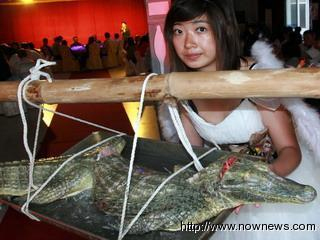 20公斤鱷魚被臺女生做成菜 觀眾驚呼“美女與鱷魚”