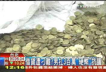 中國臺灣網6月7日消息 據臺灣TVBS電視臺報道,新北市一名邱姓商人向銀行借貸316萬(新臺幣,下同),銀行要其提供1200萬的財力證明。邱姓商人認為銀行刻意刁難,稱如果有千萬財產就不會去借錢。今天(7日)上午,邱姓商人帶著足有10萬枚、價值316萬元的硬幣,到銀行還保證金以示抗議。