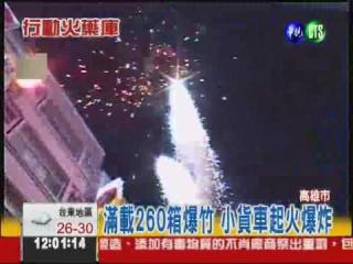 中國臺灣網6月11日消息 據臺灣媒體報道,昨(10日)晚,高雄市楠梓區一輛載有260箱爆竹的貨車行駛中突然起火爆炸,嚇壞了不少民眾。警方檢查時發現,這輛貨車沒有申請路權就上路,目前駕駛員已被依“公共危險罪”移送法辦。
