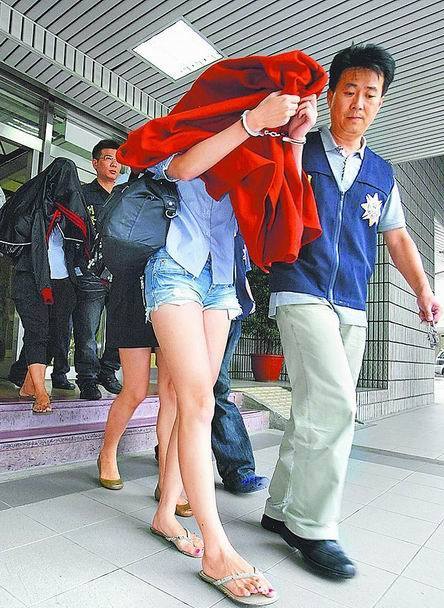 臺灣警方昨破獲騙女離家的賣淫集團,落網的女嫌犯穿著熱褲露出白皙長腿。圖片來源:臺灣媒體