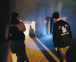 “尋鬼團”探險的廢墟里空曠且黑暗,就算再亮的手電筒也沒用,甚至還會被自己的影子、反射的燈光給嚇到。(圖片來源:臺灣《中國時報》)