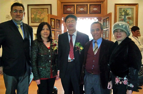 2011年12月18日在五桂樓前舉行的揭幕儀式,有數百位臺灣當局領導人、文化精英,社會賢達人士出席。下午2點半,臺灣民意機構負責人王金平率先到達會場,他與筆者及來自北京的一行人握手合影,并為修復五桂樓的技師專家頒發獎狀、獎金,還在會上講了話,他高度評價霧峰林家對臺灣近代史所作的貢獻和修復五桂樓的歷史意義。這時,臺中市長胡志強也趕來參加五桂樓修復落成剪彩儀式。代表霧峰林家致詞的是林獻堂的孫媳、明臺高級中學董事長林芳媖女士,她向社會各界人士在修復五桂樓中給予的巨大支持表示欽佩,同時對參加落成典禮的貴賓表示感謝。她特別對從北京趕來參加盛典的梁旋女士說:“100年前的1911年,你的祖父梁啟超住進五桂樓,和我的公公林獻堂在這里共謀抗日大計:100年后的2011年你又來到五桂樓和我們一起重溫歷史,這是多么值得回味和紀念的事情。一座五桂樓承載了兩岸人民的深情,我們是一家人啊!”
