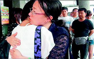 大陸領隊葉云(擁抱者右)輕擁駕駛的女兒勸慰:“你要堅強、要照顧媽媽。”后面的團員都紅了眼眶。圖片來自臺媒