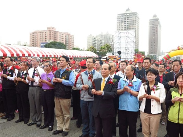 據(jù)臺灣媒體報(bào)道,桃園縣龍德宮4日上午在桃園多功能藝文園區(qū),恭迎古跡麥寮拱范宮328年開山媽祖金鑾圣駕,首次蒞臨桃園巡幸賜福,并舉行媽祖金身正駕接駕獻(xiàn)禮大典,包括“立法院長”王金平、桃園縣長吳志揚(yáng)及十方信眾皆到場恭迎媽祖結(jié)善緣。