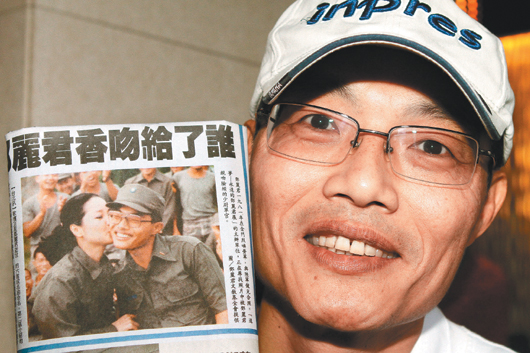 當年幸運被鄧麗君獻吻、五十三歲的薛進友昨天現身,當年他還只是21歲的小伙子。圖自臺灣《聯合報》