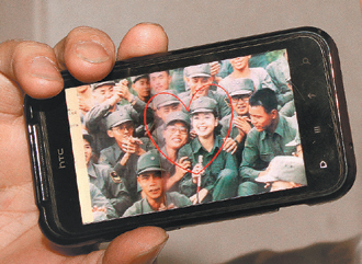 當年幸運被鄧麗君獻吻的薛進友,將他與鄧麗君的合影放進手機隨身攜帶。圖自臺灣《聯合報》