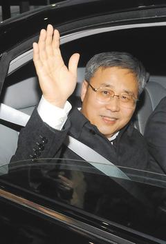 郭樹清向媒體致意。圖自臺(tái)灣《經(jīng)濟(jì)日報(bào)》