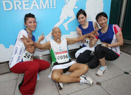 高齡96歲的彭宏年抵達終點時,贏得全部參賽者的熱烈掌聲,連在一旁參賽的空姐團也爭相與他合照。彭宏年稍微休息之后接受訪問,他說平常就有運動的習慣,每一屆都會來參加,跑完的感覺“當然很累。