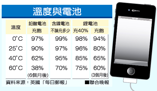 溫度與電池。圖片來源:臺(tái)灣《聯(lián)合晚報(bào)》