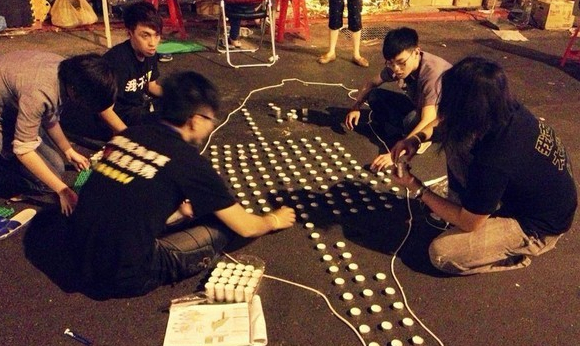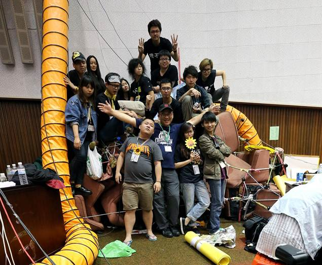 學(xué)運(yùn)最后一夜,學(xué)生如釋重負(fù)搶拍照。(臺媒圖)
