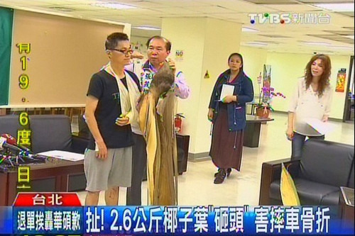 據(jù)臺灣TVBS新聞臺報道,一位民眾4月4日騎車行經(jīng)臺北市仁愛路,被重達2.6公斤的大王椰子落葉砸中頭部,導(dǎo)致摔車、手部骨折。