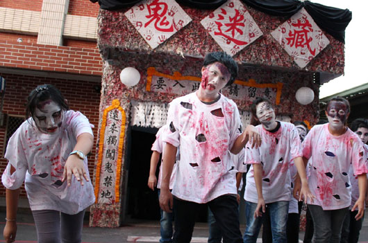 很多臺灣高校都會舉辦“裝神弄鬼”活動,圖為臺灣遠東科大學生去年萬圣節舉辦的活動。來源:臺灣遠東科大