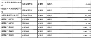 臺灣監察部門網站上馬英九的部分存款明細,他和夫人周美青去年的存款達到7293萬元新臺幣。
