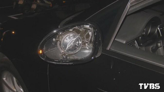 凌晨12點半,保時捷跑車車主跟朋友在豐樂公園旁吃宵夜,突然門外傳來碰撞聲,全部人都到門外看,從人行道這邊沒發現什么不對,但走到馬路上車主簡直快氣炸。愛車的黑色車身被刮出一條長長的白色刮痕,將近50厘米長,連后照鏡都被撞破。車主一行人四處找了一下,發現前方只有一輛摩托車經過,立刻追了上去,在前方幾個路口把騎士攔了下來。