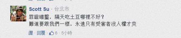 “罪證確鑿,隔天吃土豆哪裡不好?難道要跟我們一樣,永遠只有受害者沒人權才爽”