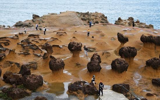 幾名游客在臺灣野柳地質(zhì)公園游覽(10月18日攝)。由于進(jìn)園游客比往年同期大幅減少,景區(qū)顯得十分冷清。臺灣觀光部門最新公布的9月統(tǒng)計(jì)數(shù)字顯示,大陸去臺游客相比去年同期減少37.79%,預(yù)計(jì)全年大陸游客將比去年減少90萬人次。新華社記者 朱祥/攝
