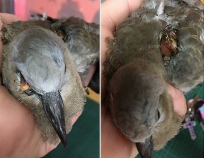 從連老師發文配圖可以看到,這只小鳥的翅膀受傷,眼睛流出一大滴黃色水珠,令許多網友心疼,也紛紛留言表示,“這是斑鳩”、“好心有好報”,也有網友建議“以后發現野生鳥類受傷,最好馬上直接通報野鳥協會來處理”。