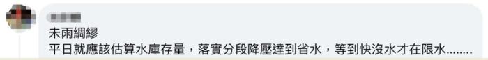 在22日召開的水情討論會上,臺灣“旱災中央災害應變中心”將新竹、苗栗及臺中地區(qū)(含北彰化)水情燈號調(diào)整為代表水情稍緊的“綠燈”,呼吁民眾節(jié)約用水并減少水源耗損;高雄因高屏溪川流量變化大,轉(zhuǎn)為減量供水的“橘燈”。此決定引來網(wǎng)友質(zhì)疑:“平日就應該估算水庫存量,落實分段降壓達到省水,等到快沒水才在限水”。