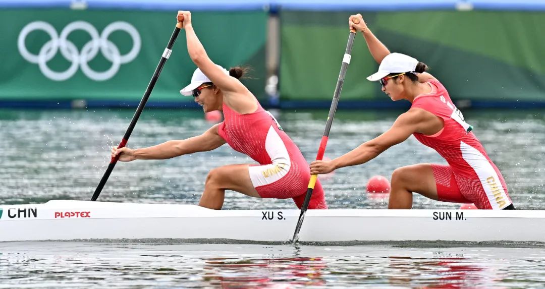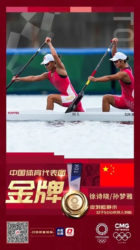 8月7日,東京奧運會女子500米雙人劃艇決賽中國組合徐詩曉/孫夢雅以1分55秒495奪得金牌