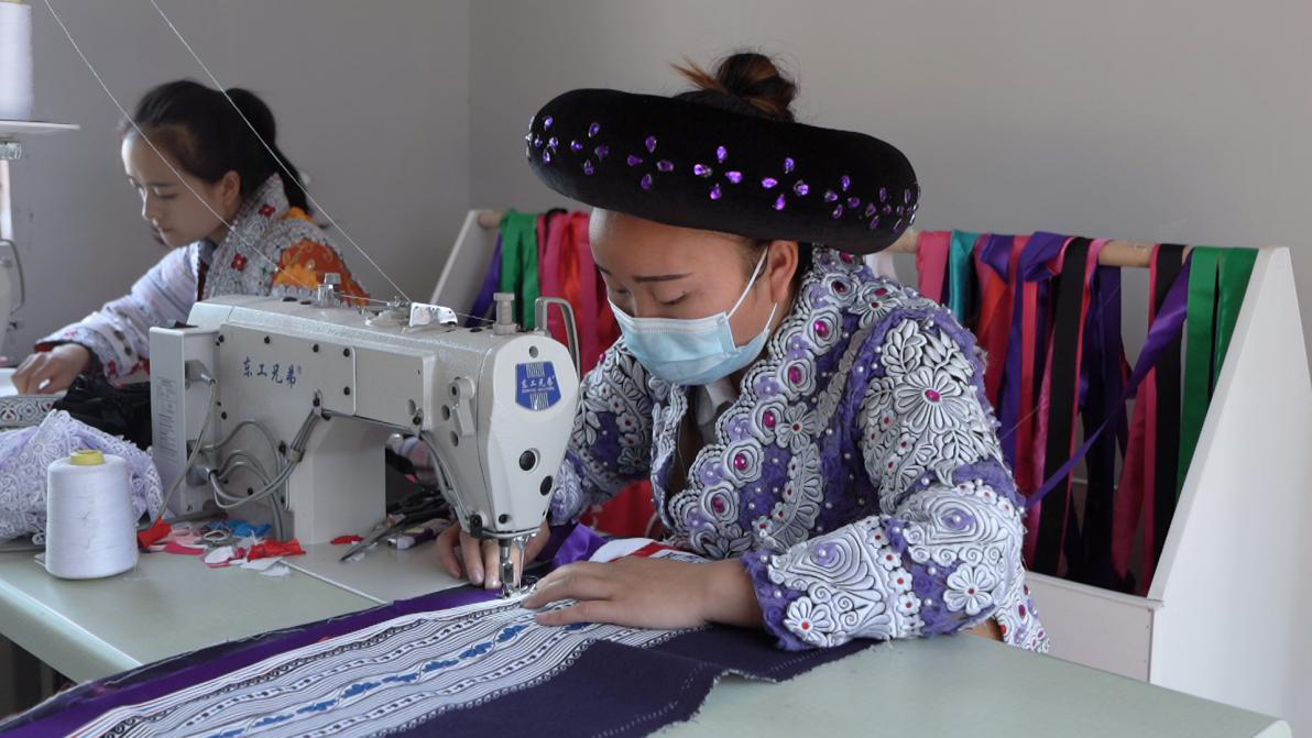 化屋村苗繡商店內,一件件精美的手工苗繡服裝、特色小飾品琳瑯滿目;扶貧車間里工人飛針走線,忙著趕制訂單。