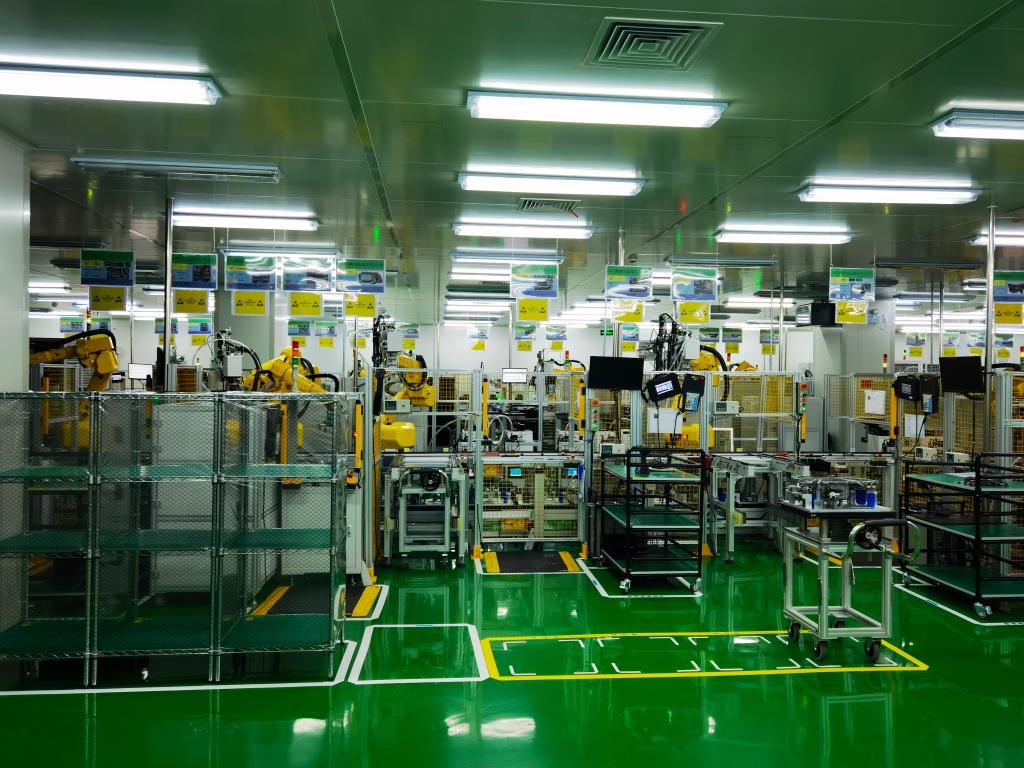 日本電產旗下尼得科艾萊希斯電子(浙江)有限公司工廠生產車間。(新華社記者 殷曉圣 攝)