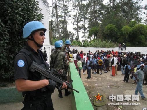 中國駐海地維和防暴隊在執(zhí)行任務(wù)。圖片來源:中國軍網(wǎng)