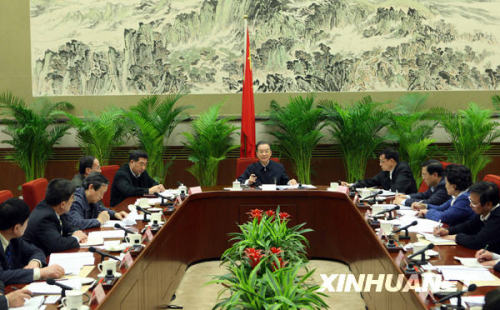 1月22日,溫家寶就經濟方面問題聽取代表意見。1月22日至2月1日,國務院總理溫家寶在北京中南海主持召開五次座談會,征求對即將提請十一屆全國人大三次會議審議的《政府工作報告》的意見。新華社記者 劉衛兵 攝