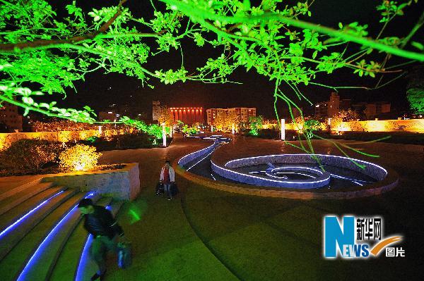 5月11日,汶川中軸線廣場夜景。 “5·12”汶川地震過去兩年了,汶川新城重建初見輪廓,整個縣城煥發著勃勃生機,夜色迷人。 新華社記者 何俊昌 攝